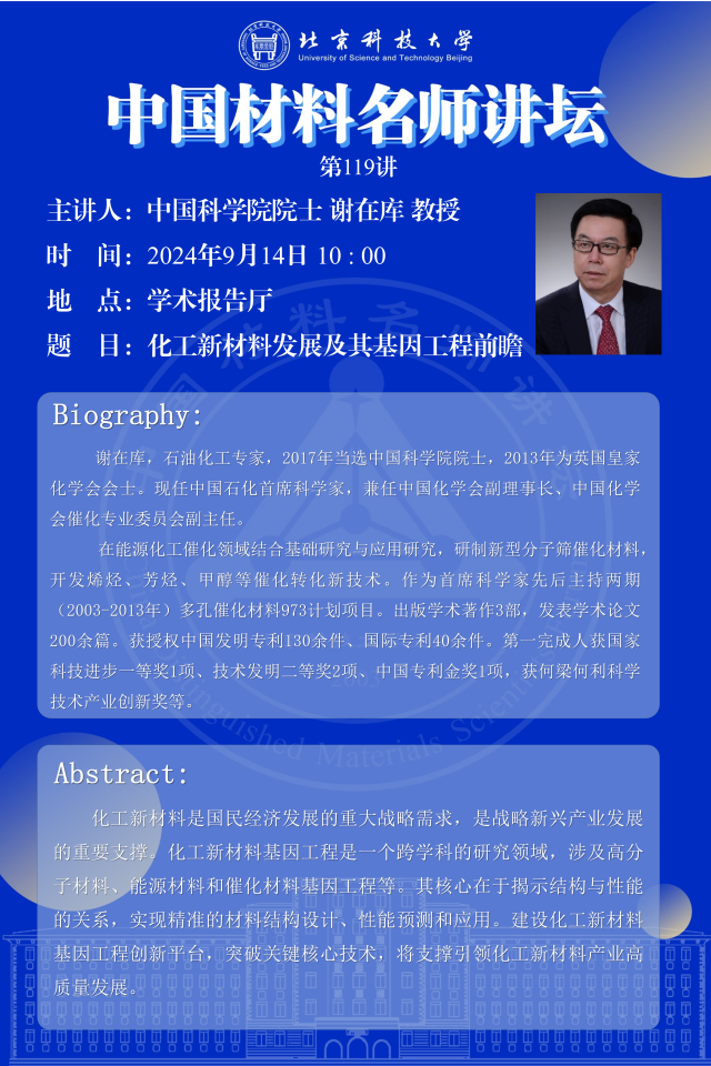 中国材料名师讲坛第119讲——中国科学院院士 谢在库 教授